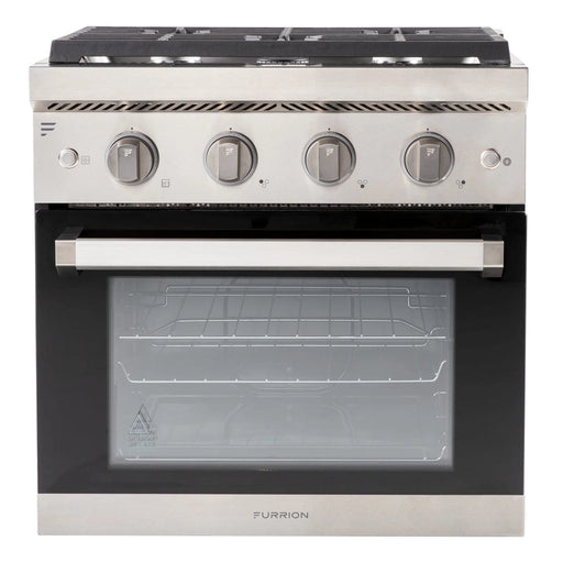 Furrion 3-Burner RV Gas Range Oven with Flame Sense (FFD) - 17", Glass Cover, Black & Stainless Steel Finish #FGR17G3MA2B-BG